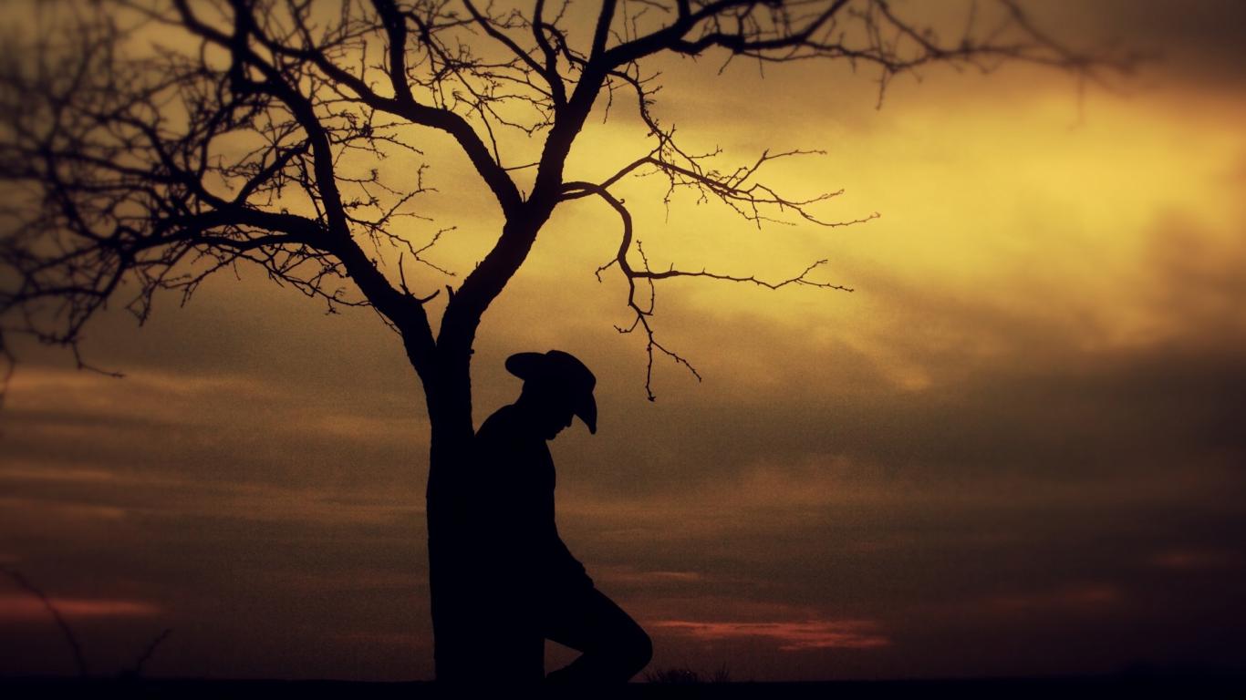 Wallpaper The silhouette of a man in a tree