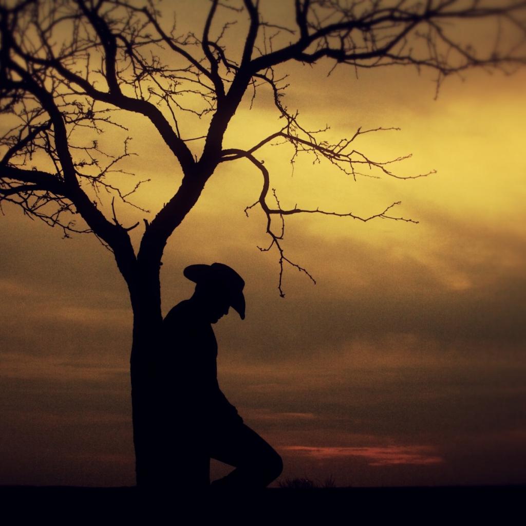 Wallpaper The silhouette of a man in a tree