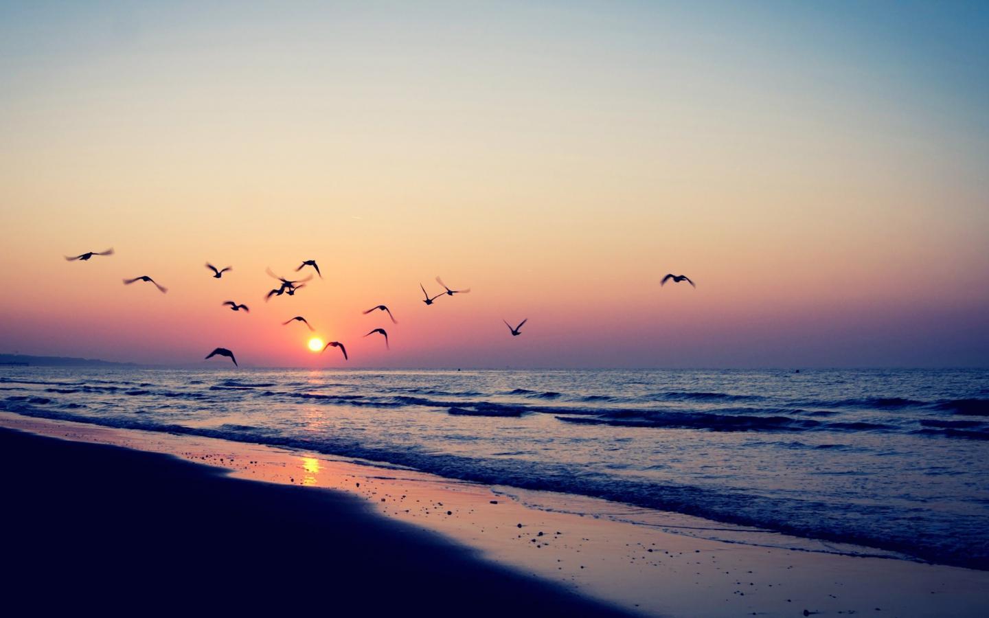 Wallpaper Birds flying into the sunset