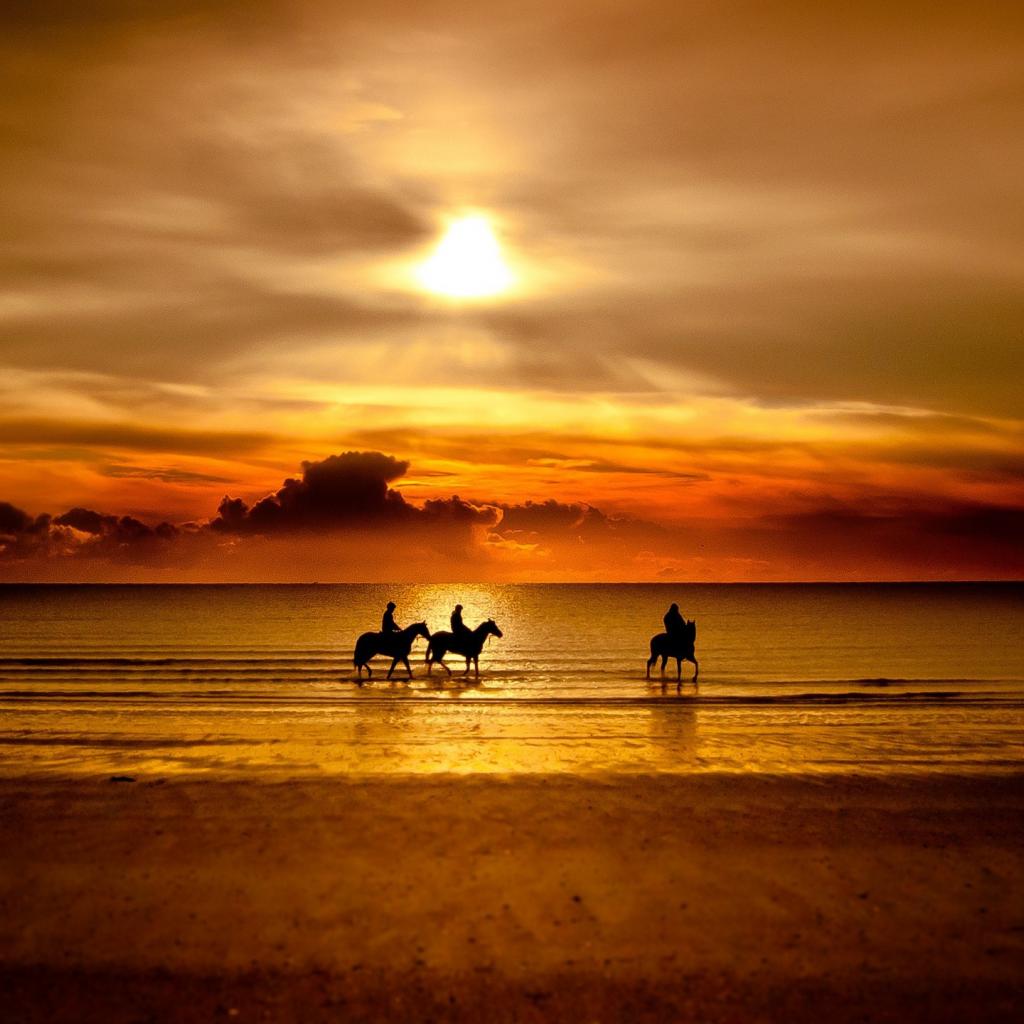 Wallpaper Horseback riding along the beach