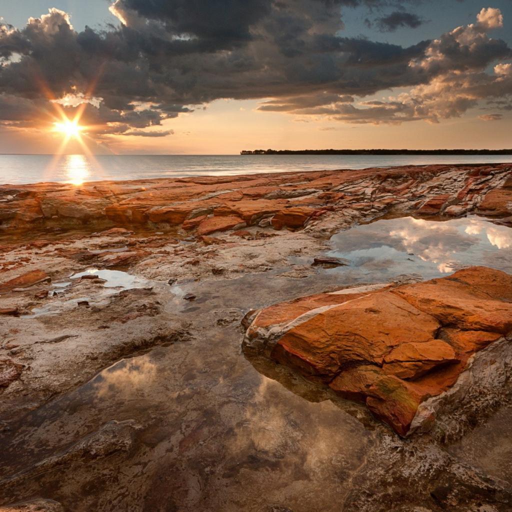 Wallpaper Sunset on the rocky shore