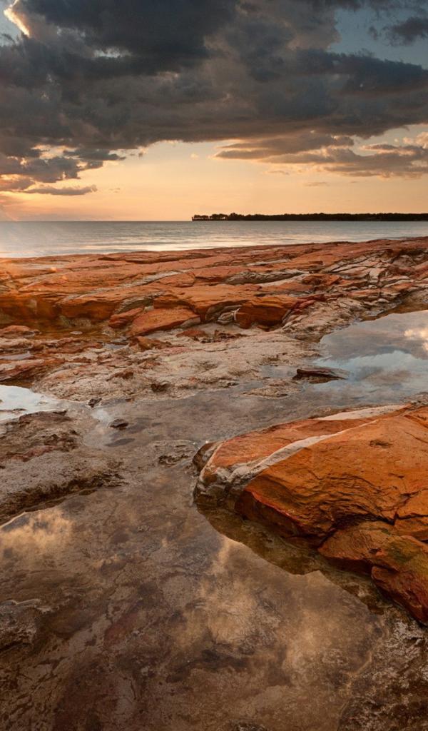 Wallpaper Sunset on the rocky shore
