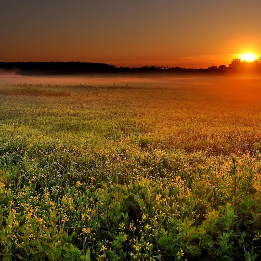 Wallpaper The sun is setting behind the forest