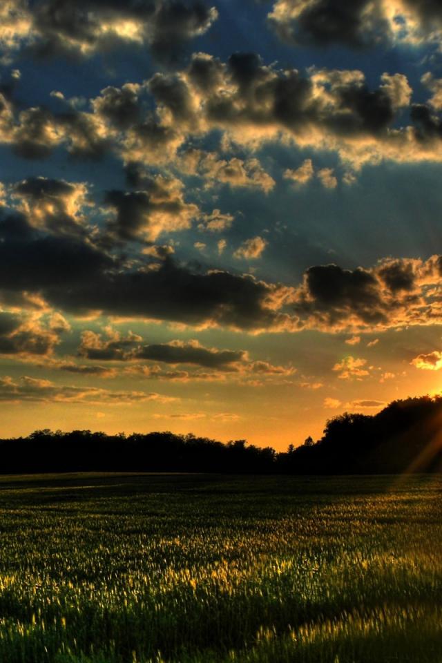 Wallpaper Sunset on the green field