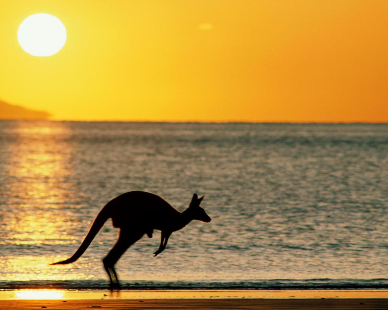 Wallpaper Sunset with kangaroos