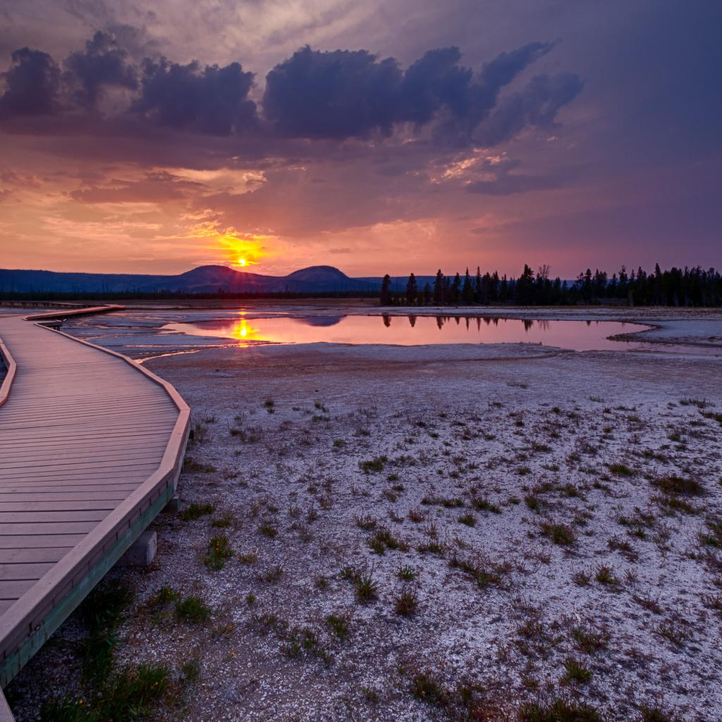 Wallpaper Small bridge on sunset background