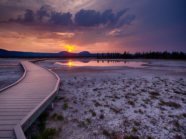 Wallpaper Small bridge on sunset background