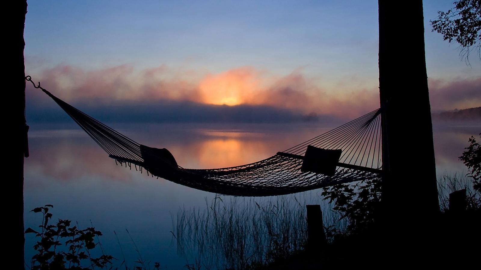 Wallpaper Hammock by the lake at sunset