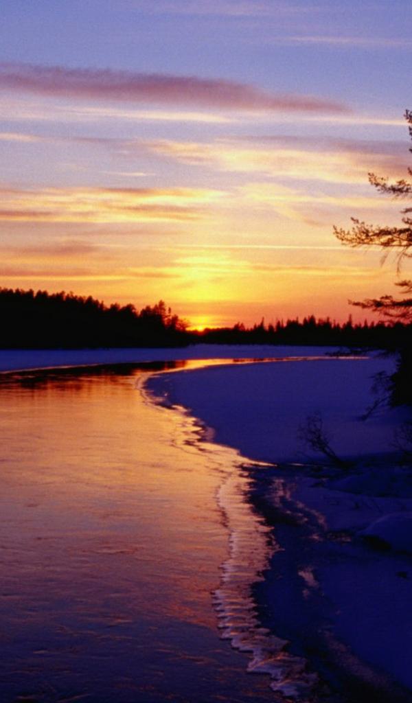 Wallpaper Sunset over a freezing river