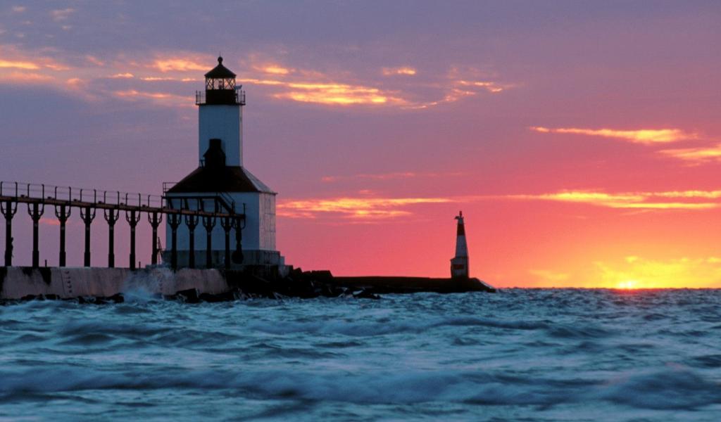 Wallpaper Lighthouse on sunset background in the U.S.
