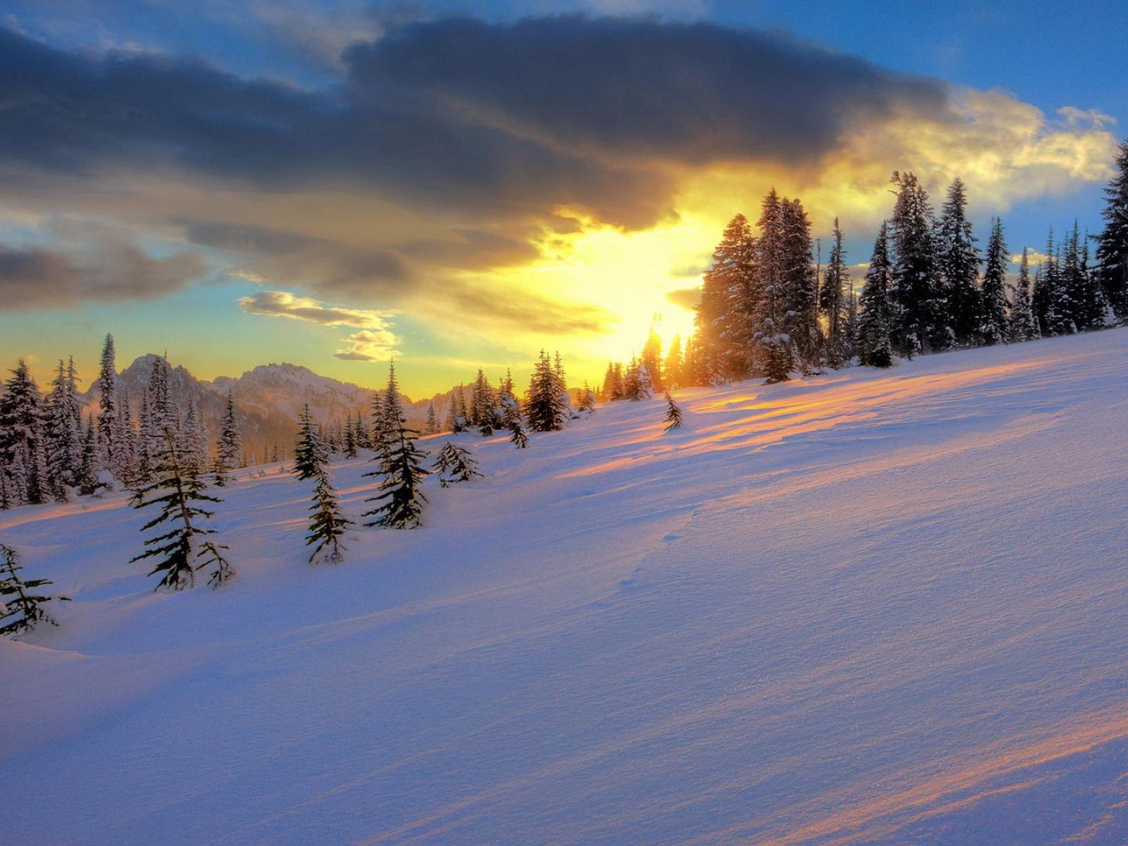 Wallpaper Sunset on the hillside