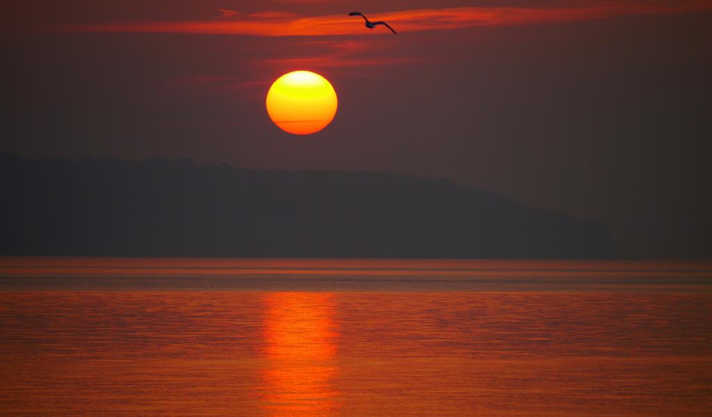 » Wallpaper Sunset over the sea with a bird