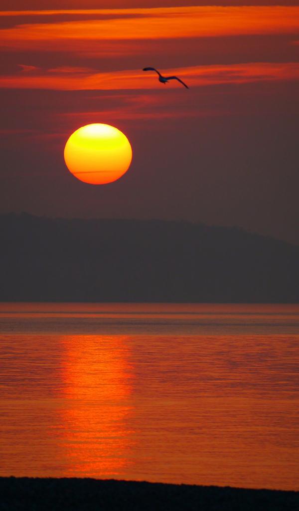 » Wallpaper Sunset over the sea with a bird