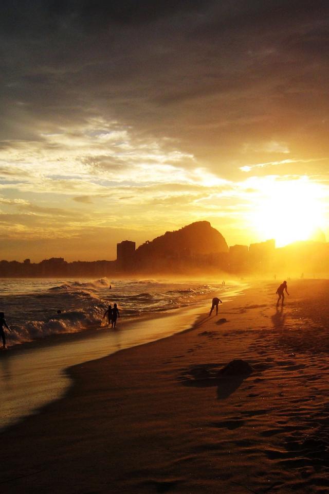 Wallpaper People bathe at sunset
