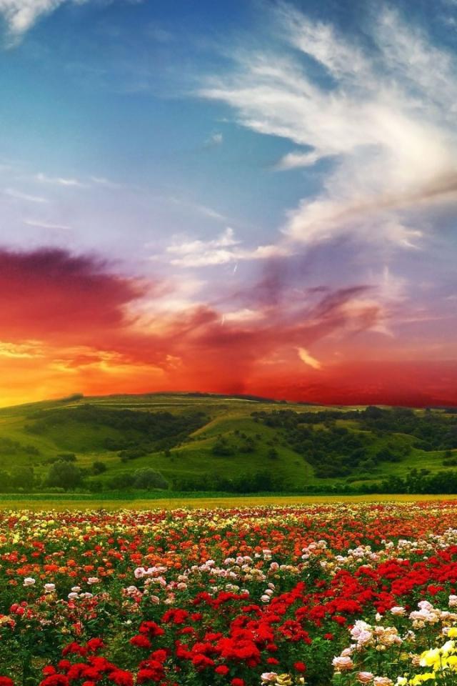 Wallpaper Red sunset over the field