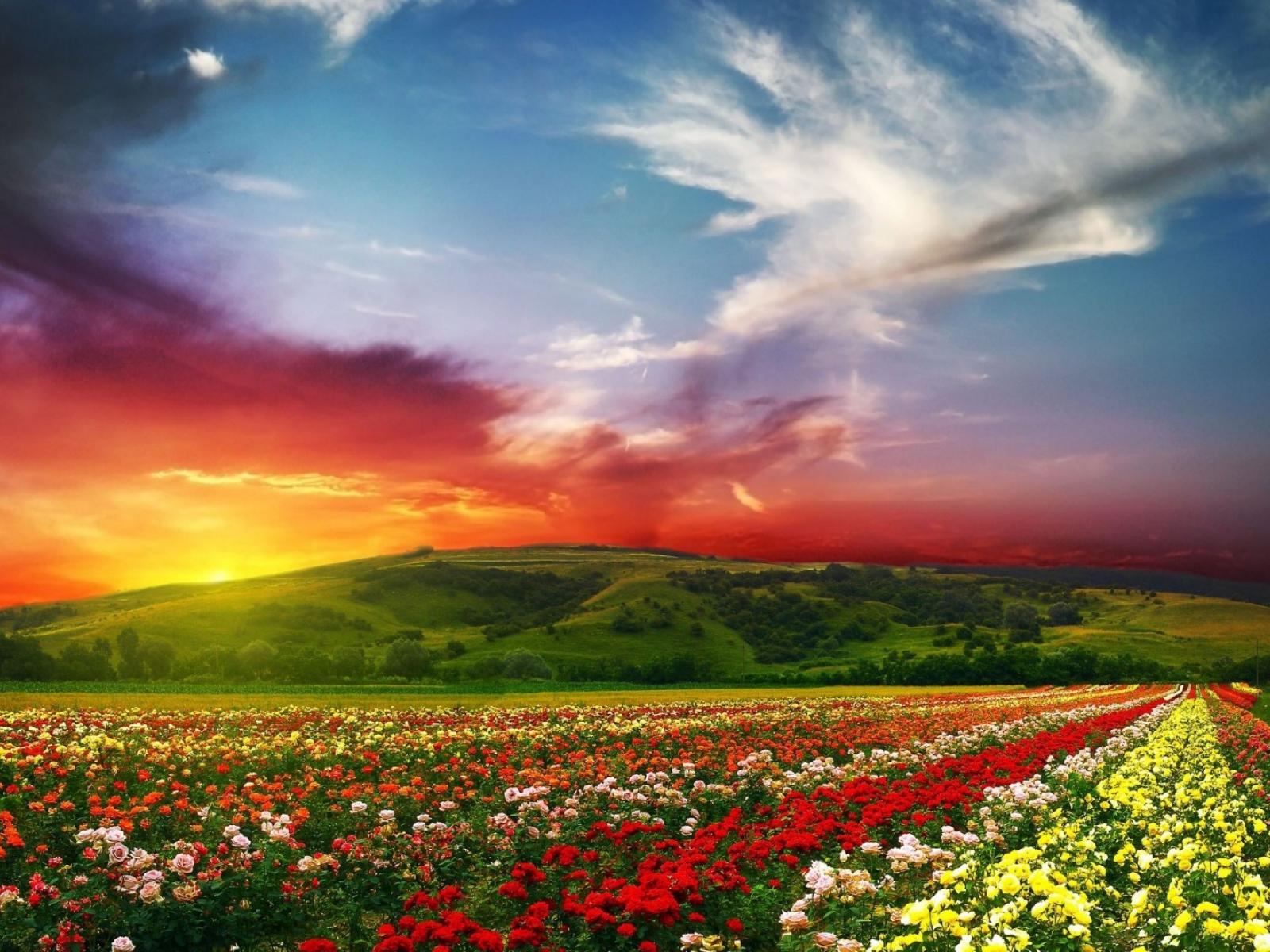 Wallpaper Red sunset over the field
