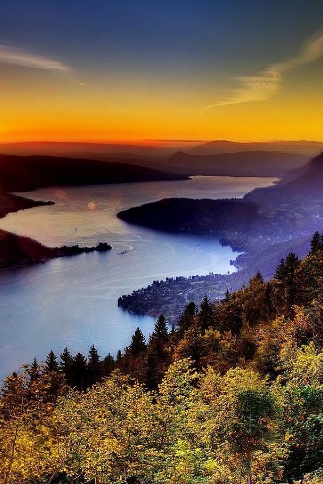 Wallpaper Sunset on the meandering river