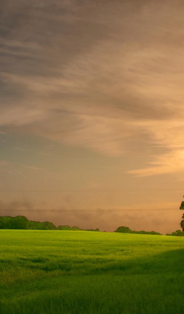 Wallpaper Sunset on the green field