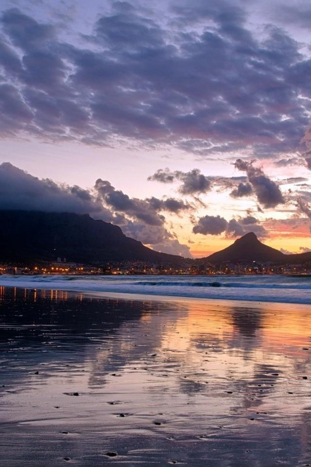 Wallpaper Sunset on the beach over the mountains