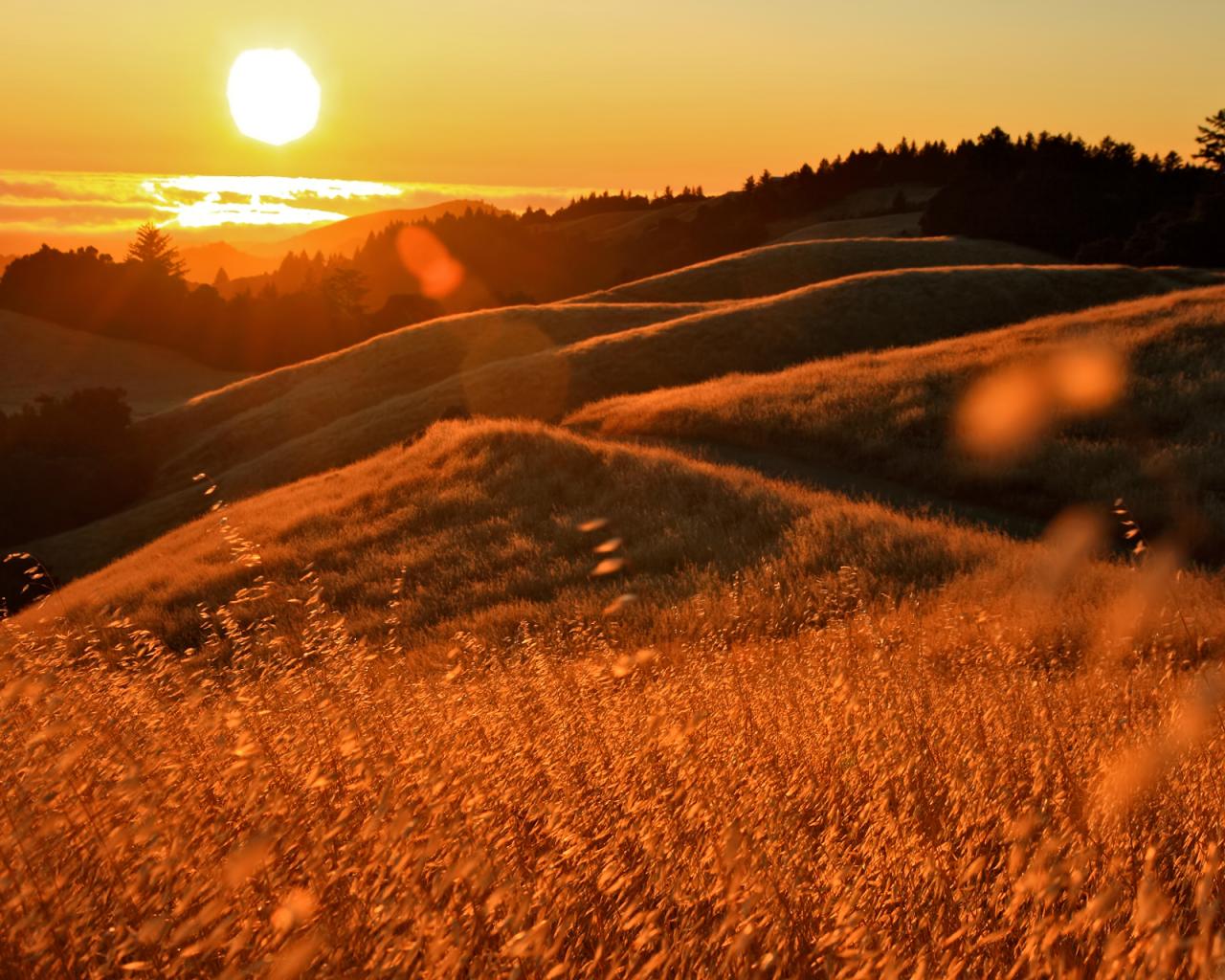 Wallpaper Sunset over the field in California