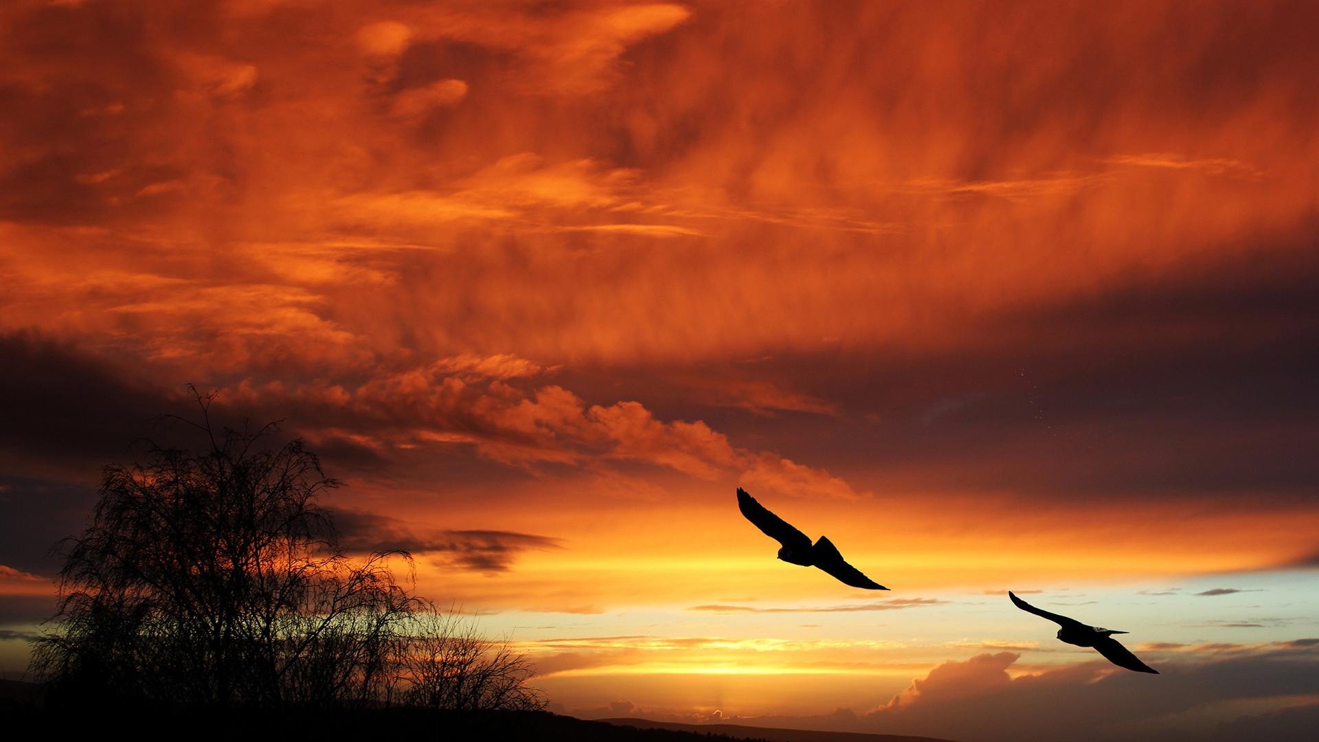 Wallpaper Sky, Sun at sunset, July