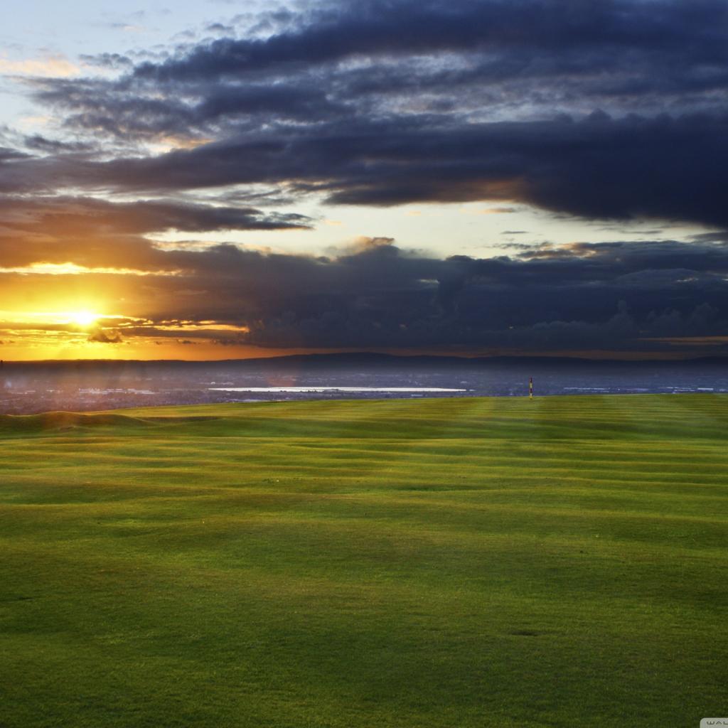 Wallpaper Landscape, Sun at sunset, Dark clouds, July