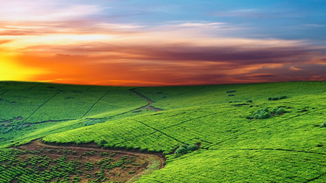 Wallpaper Green pasture at sunset