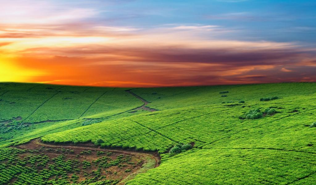 Wallpaper Green pasture at sunset