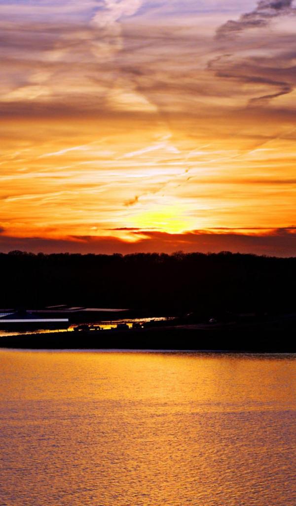 Wallpaper Lake and sunset