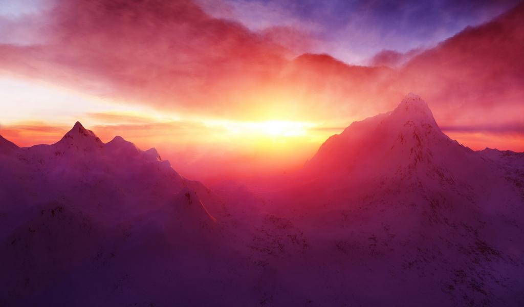 Wallpaper Sunrise in the Mountains