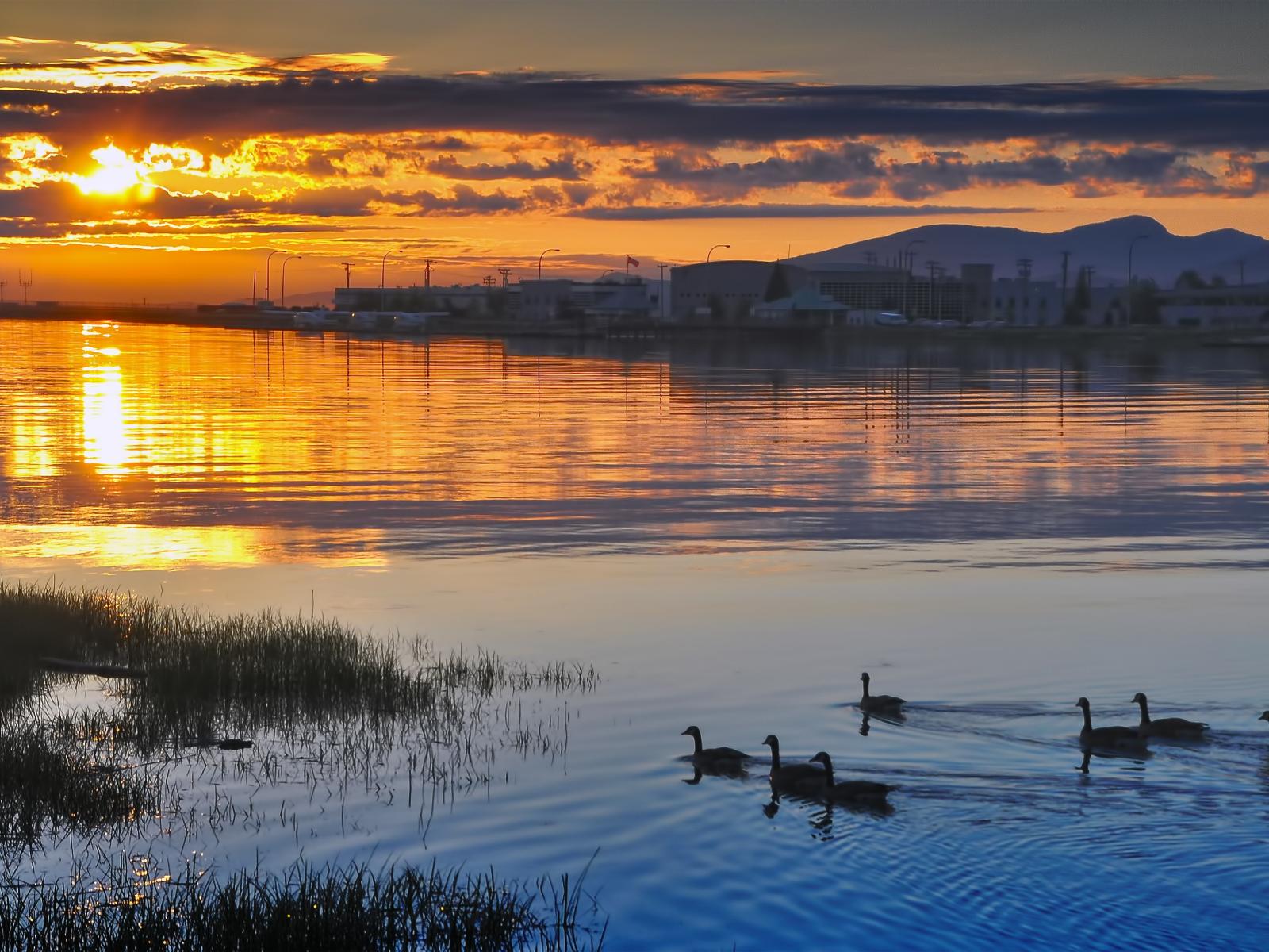 Wallpaper Ducks at sunset