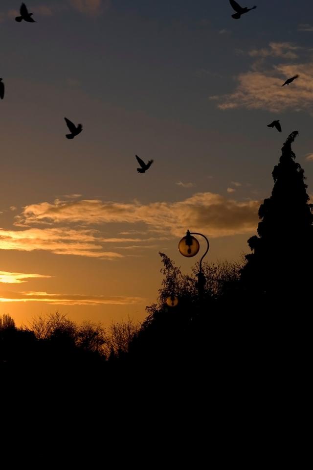 Wallpaper Pigeons at sunset