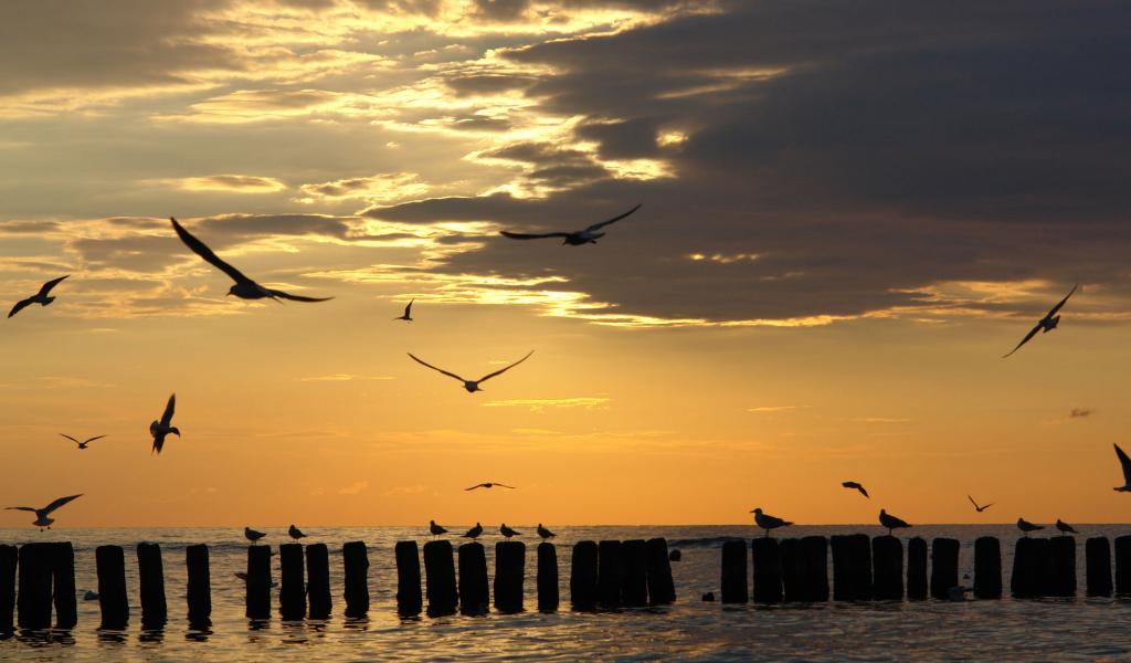 Wallpaper Seagulls at sunset
