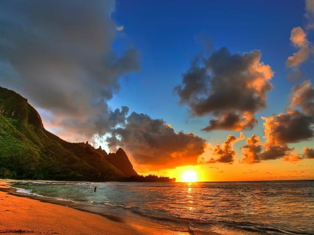 Wallpaper Sunset on the ocean beach