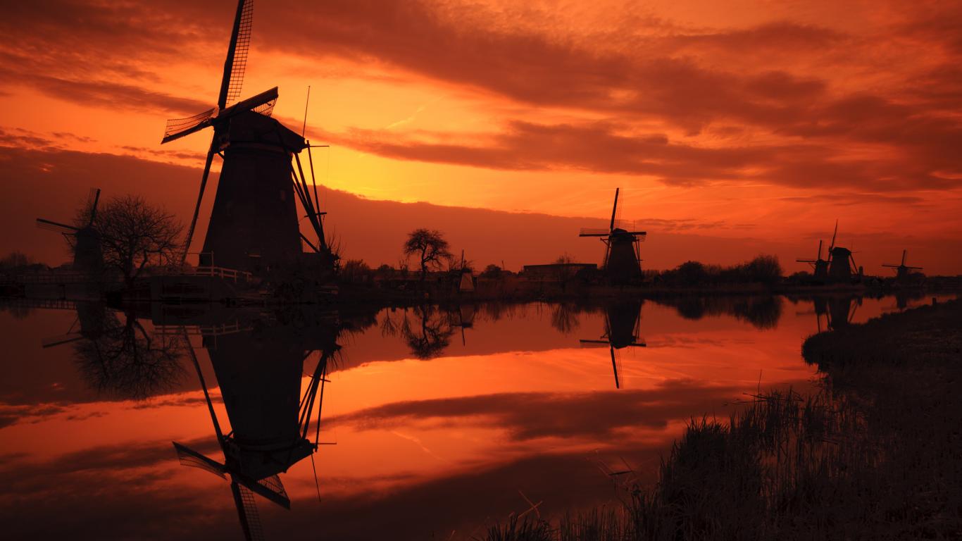 Wallpaper Windmills at Sunset