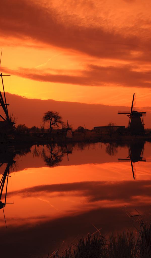 Wallpaper Windmills at Sunset