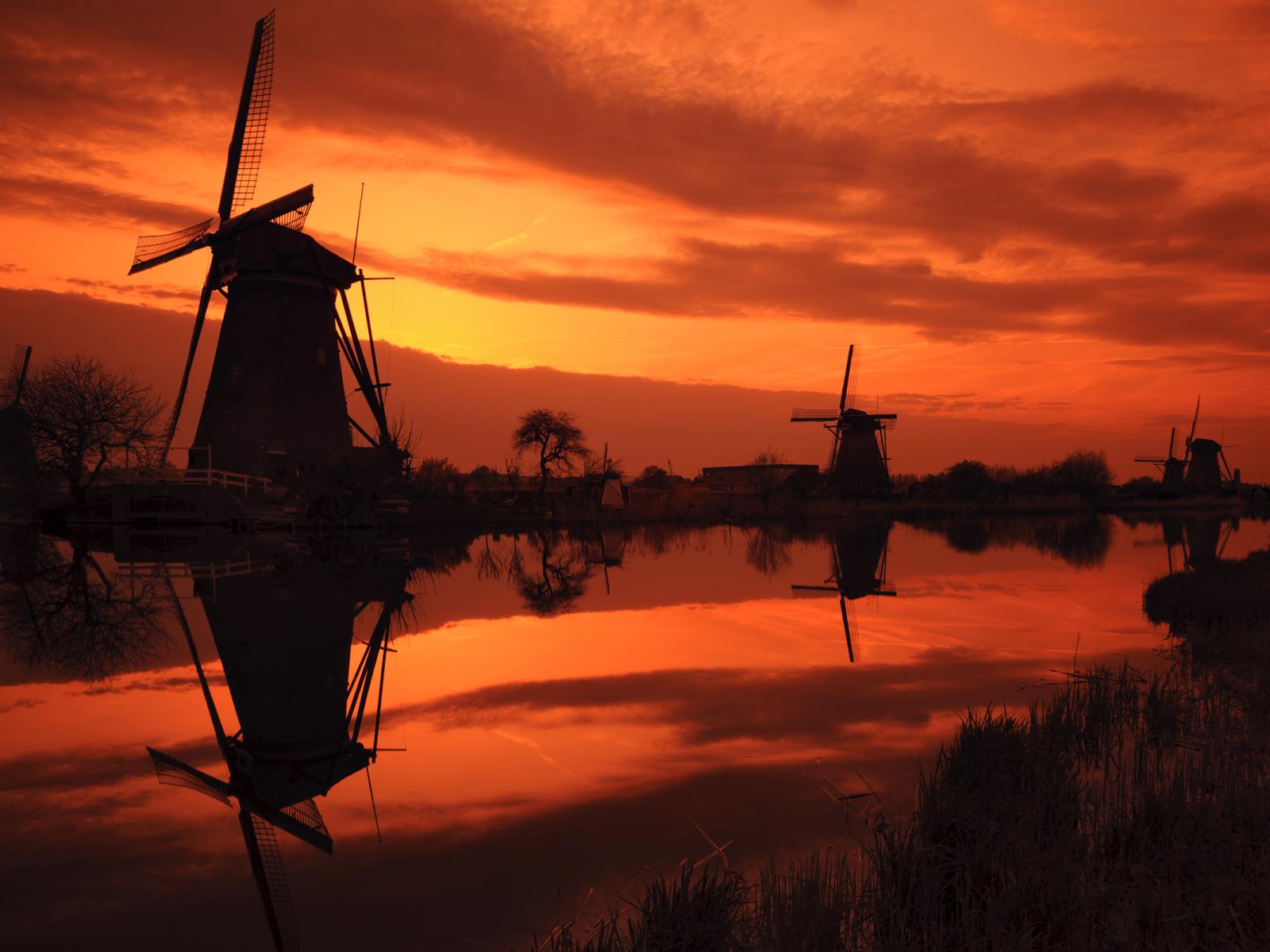 Wallpaper Windmills at Sunset