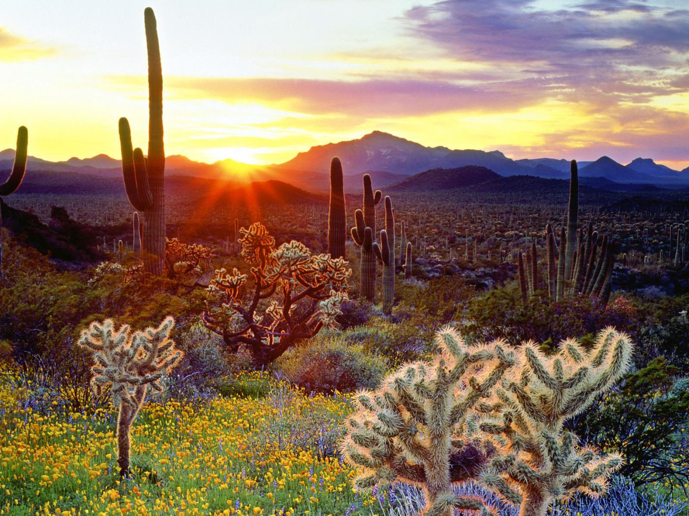 Wallpaper Sunset and cacti