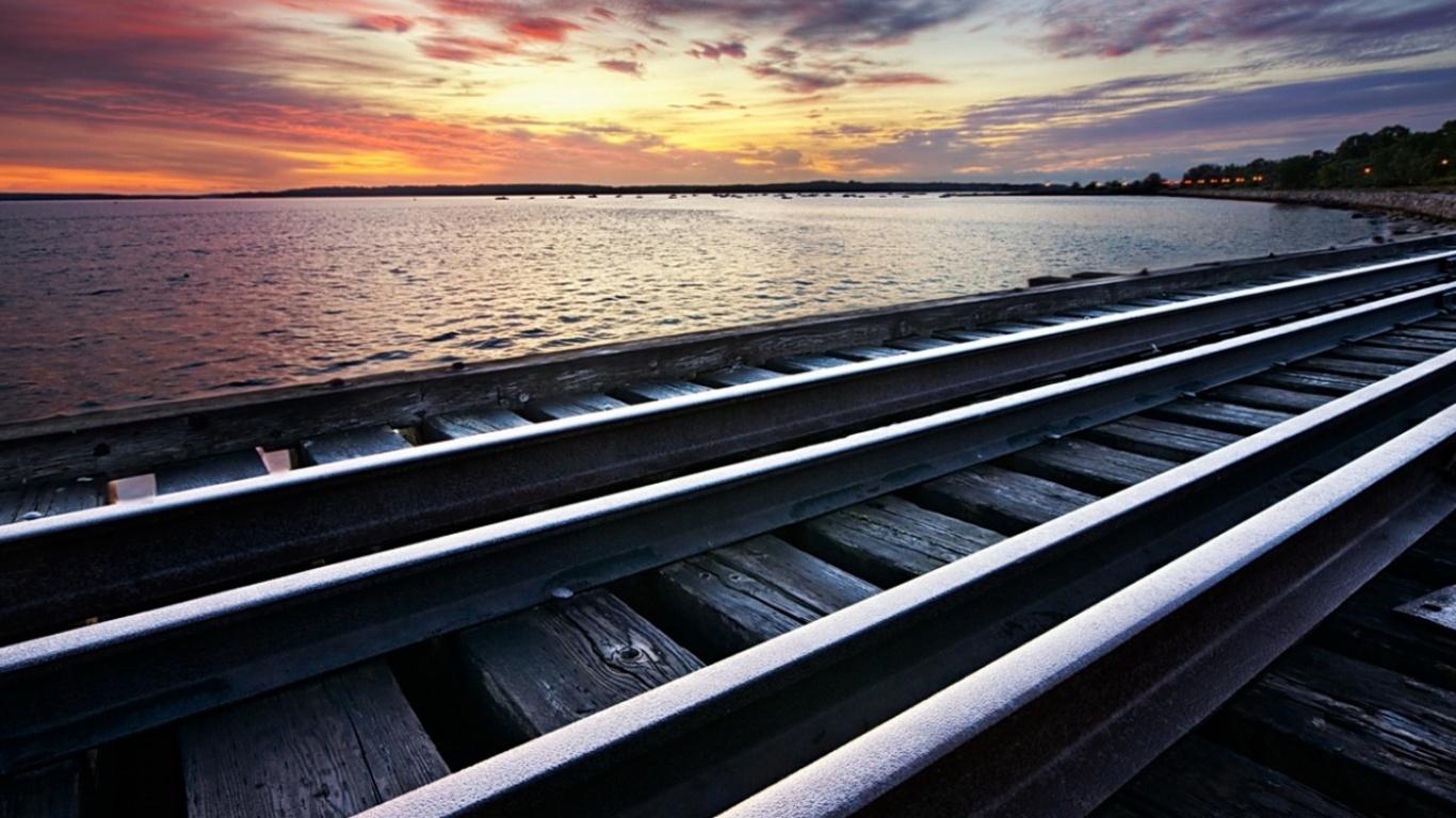 Wallpaper Rails go in the sun, sunset