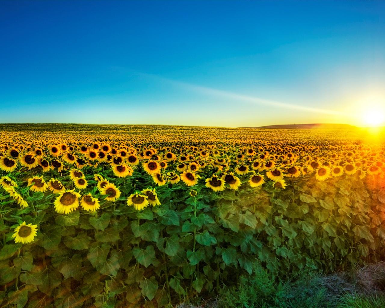 Wallpaper Sunflower fields at dusk