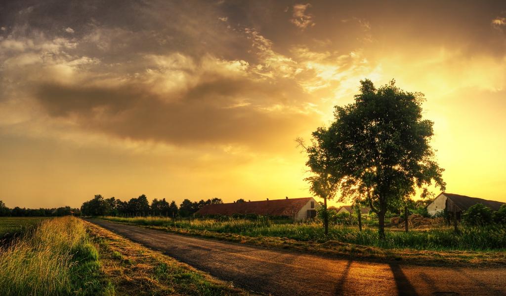 Wallpaper Sunset in the village