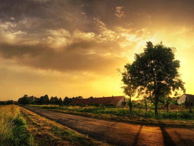 Wallpaper Sunset in the village