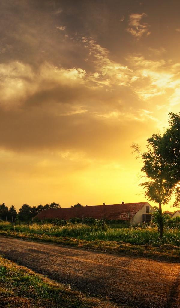 Wallpaper Sunset in the village