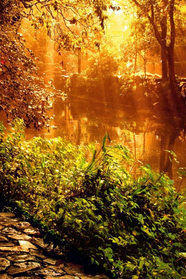 Wallpaper A beautiful sunset at the Forest River