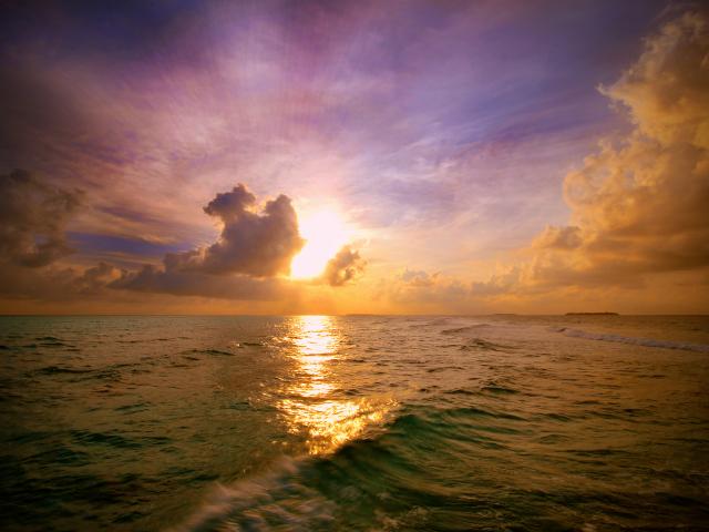 Wallpaper Sunset on the sea horizon