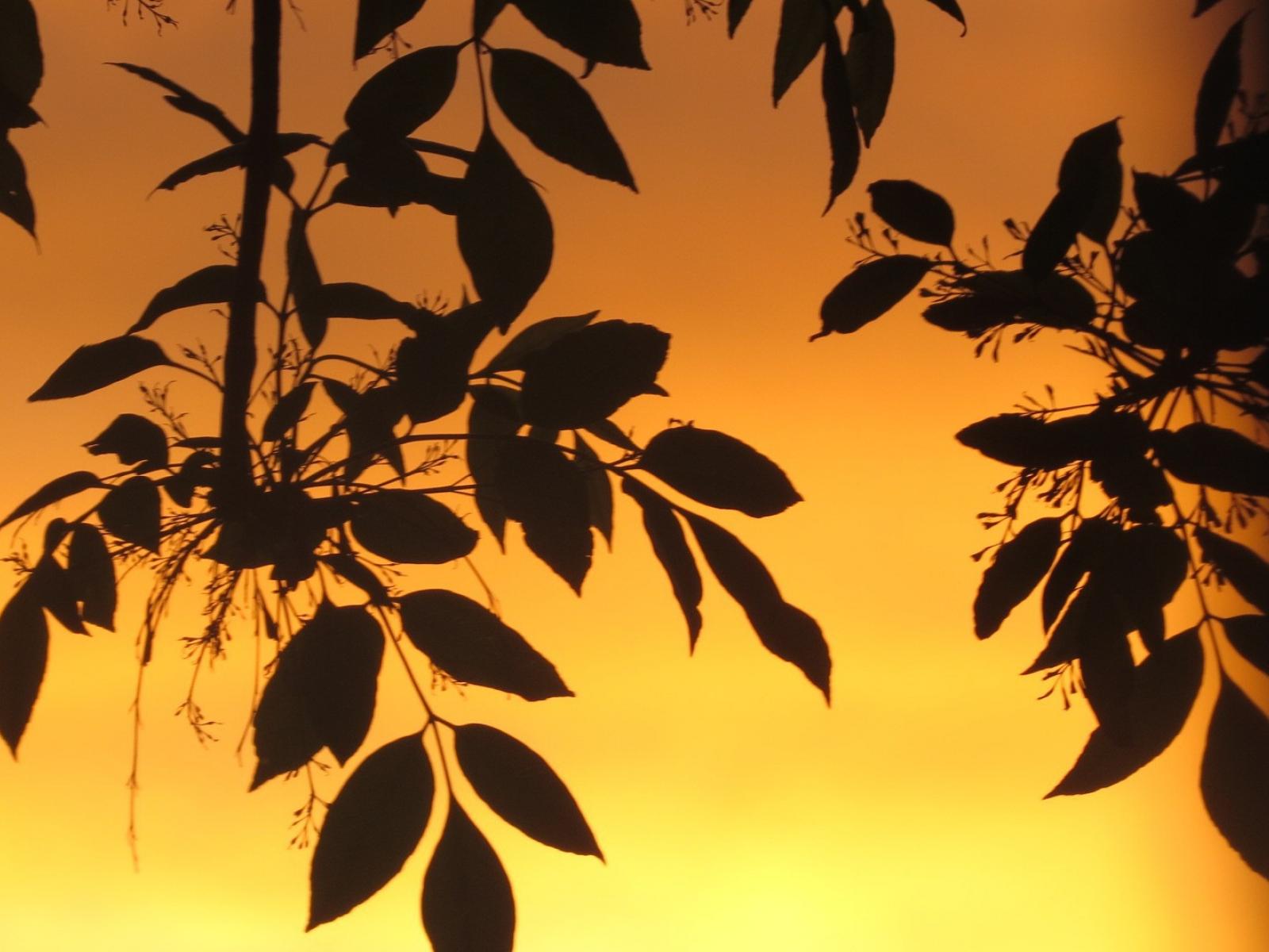 Wallpaper Leaves against orange sky