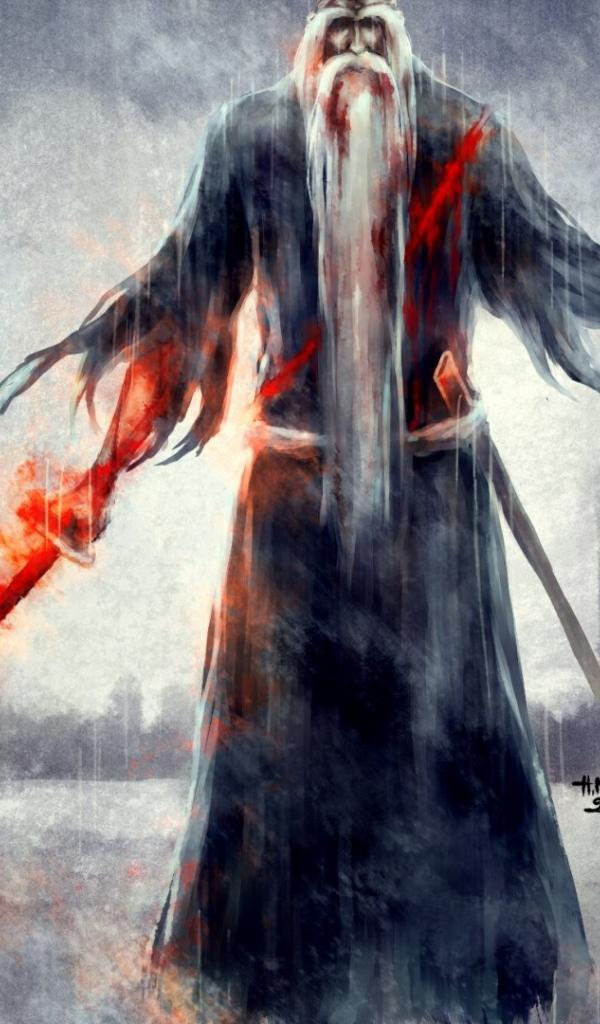Wallpaper An old man with a flaming sword, the artist NanFe