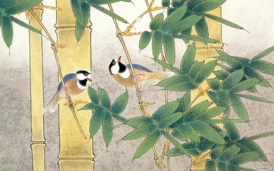 Wallpaper Birds include bamboo, Japanese painting