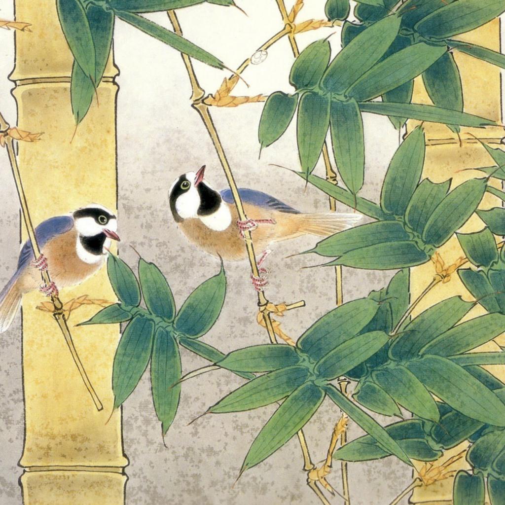 Wallpaper Birds include bamboo, Japanese painting