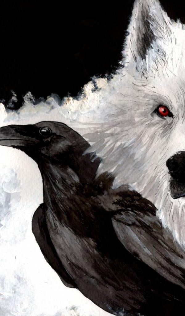Wallpaper White Wolf and Raven